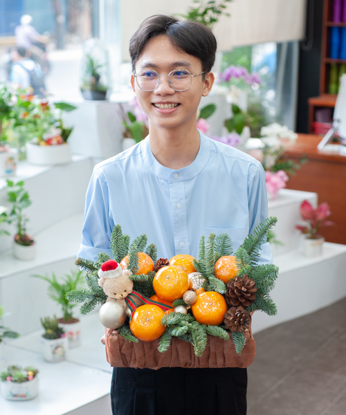 Sản phẩm kết hợp thông tươi, 7 trái quýt vàng, gấu bông và các phụ kiện Noel mang đến một món quà vừa ấm áp vừa may mắn. Quýt vàng tượng trưng cho tài lộc và sự sung túc, thông xanh thể hiện sự bình an và sức sống bền vững. Gấu bông Noel và các chi tiết trang trí tạo điểm nhấn vui tươi, mang theo lời chúc cho một mùa Giáng Sinh an lành và tràn đầy niềm vui.