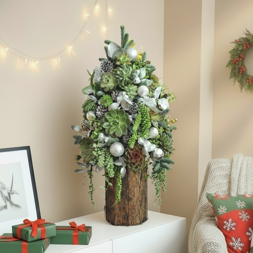 Khi thế giới vẫn xoay quanh những cây thông nhựa lấp lánh và món quà truyền thống, Hoayeuthuong mong muốn thổi một làn gió mới vào không gian lễ hội, mang theo sức sống bền bỉ, vẻ đẹp nguyên sơ và thông điệp bền vững. Làn gió ấy đến từ thế giới thu nhỏ đầy mê hoặc của những cây sen đá có thể trồng lại thành cây cảnh sau khi chưng bày. Hãy cùng khám phá các ý tưởng quà tặng kỳ diệu, nơi thiên nhiên thu nhỏ lại trong góc trang trí giáng sinh của bạn.