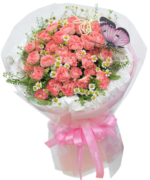Bó hoa Hồng Chùm Tiên Tử mang vẻ đẹp nhẹ nhàng, trong trẻo và đầy nữ tính. Những đóa hồng chùm hồng phấn được kết hợp khéo léo cùng hoa cúc tana trắng nhỏ, tạo nên cảm giác tinh khôi và tươi mới như nắng sớm. Sắc hồng tượng trưng cho tình yêu dịu dàng, lòng biết ơn và niềm vui trong cuộc sống. Bó hoa được gói trong giấy hồng pastel, điểm nơ ruy băng cùng chiếc bướm xinh trang trí, rất phù hợp để tặng mẹ, bạn gái, đồng nghiệp hoặc làm quà sinh nhật, 8/3, 20/10. Đây là món quà gửi gắm sự ngọt ngào và lời chúc yêu thương đầy tình cảm chân thành