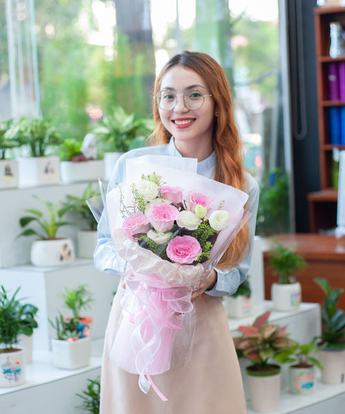 Được thiết kế với tông trắng hồng, "Ngọc ngà" đem lại cảm giác tươi mát và trong trẻo vô cùng. Mẫu hoa được thiết kế từ hoa hồng và cát tường trắng, trên nền green bell xanh tạo thành một bó hoa đầy dịu dàng, nữ tính. Đây sẽ là món quà tuyệt vời dành tặng những người thân yêu của bạn.