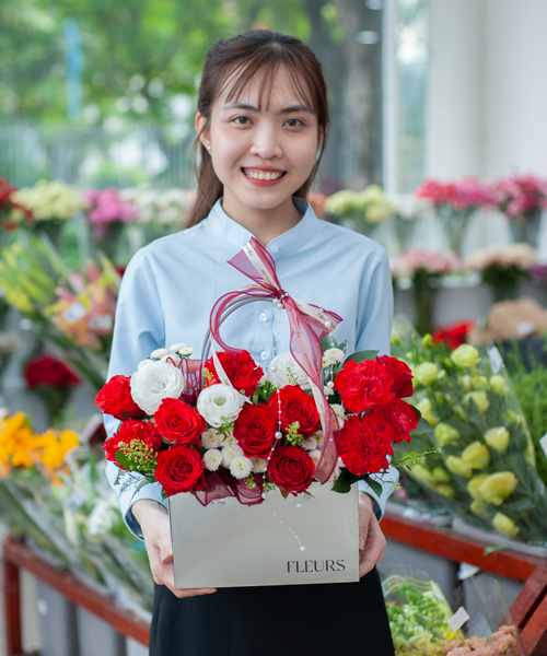 *Lưu ý: Do dịp lễ nhu cầu nguyên phụ liệu tăng cao, nếu thiếu hoặc hết hàng, shop xin phép thay thế hoa và phụ kiện tương tự nhưng vẫn đảm bảo tính thẩm mỹ. Rất mong Quý khách thông cảm!