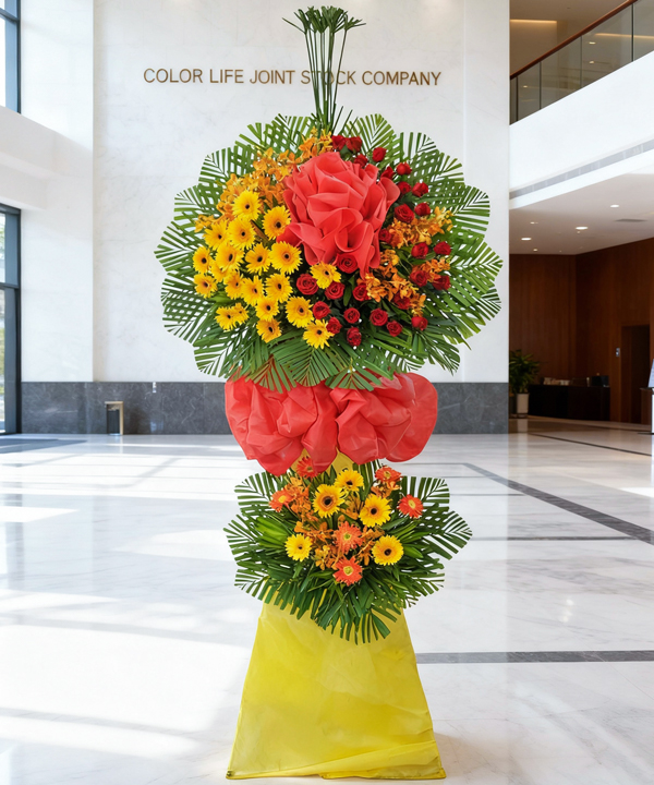 Kệ hoa Hưng Thinh IV được thiết kế với tông màu vàng chủ đạo, mang ý nghĩa về một lời chúc tấn tài tấn lộc, gặp nhiều may mắn và thành công. Kệ hoa thích hợp để dành tặng cho đối tác, bạn bè trong những dịp khai trương, kỉ niệm...