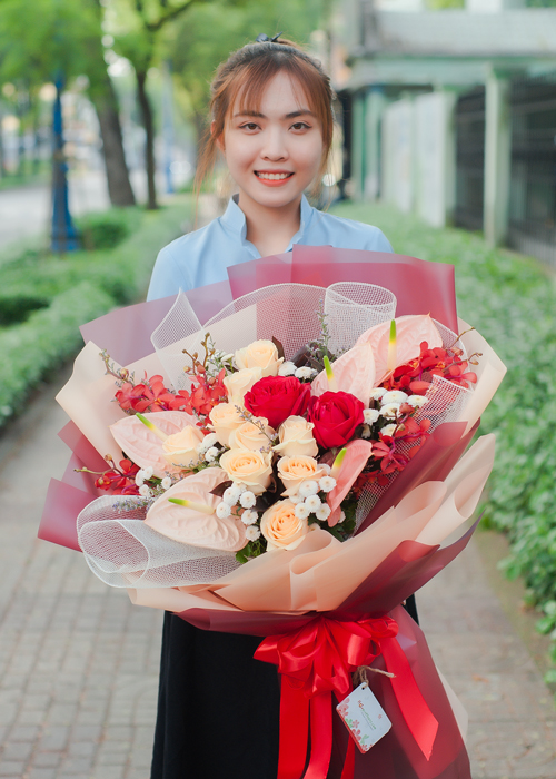 Giỏ hoa Endless Dream được thiết kế với tông hồng chủ đạo, kết hợp hài hòa giữa hồng lạc thần kiêu sa, tú cầu hồng bồng bềnh, tulip hồng thanh nhã và những bông đồng tiền tua độc đáo, tạo nên một khu vườn mơ đầy nữ tính và lãng mạn. Các lớp hoa được cắm tỏa ngang trong giỏ mây, xen kẽ lá xanh và vài chi tiết nơ ruy băng mềm mại, mang lại cảm giác vừa hiện đại vừa ngọt ngào. Sắc hồng dịu dàng tượng trưng cho những ước mơ đẹp, tình cảm chân thành và niềm hy vọng vào tương lai, vì vậy Endless Dream rất phù hợp để gửi tặng người yêu, bạn bè, đối tác nữ trong các dịp sinh nhật, chúc mừng, khai trương hay kỷ niệm, như một lời chúc cho hành trình phía trước luôn tràn đầy cảm hứng và những giấc mơ không hồi kết.