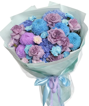 Bó hoa mang sắc xanh tím đầy thanh khiết, tượng trưng cho sự bình yên, trí tuệ và những cảm xúc sâu lắng nhưng dịu dàng. Gam màu pastel mát mắt gợi cảm giác thư thái, như hơi thở dịu êm của buổi sớm bên cửa sổ. Sự kết hợp giữa các loài hoa mang đến năng lượng của niềm tin, sự hy vọng và vẻ đẹp tinh tế. Đây là bó hoa hoàn hảo để gửi tặng những người bạn trân quý thay cho lời chúc an lành, nhẹ nhàng trong tâm hồn.