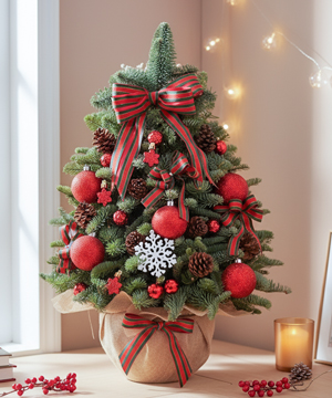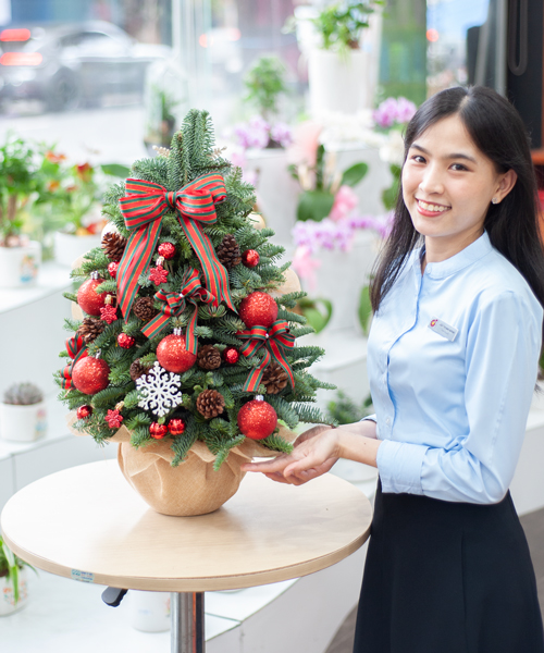 Được làm từ cành thông tươi Đan Mạch chất lượng cao, cây thông này được thợ cắm tỉ mỉ vào foam xốp có nước, giúp giữ độ tươi lâu dài. Với sự kết hợp tinh tế giữa cành thông xanh mướt và các phụ kiện trang trí như bóng đèn, quả châu, ruy băng, cây thông mang đến vẻ đẹp hoàn hảo như một cây thông tươi thật. Bên cạnh đó, các loại quả trang trí đều là trái cây nhập khẩu tươi ngon tạo nên một mòn quà độc đáo và ý nghĩa dành tặng bạn bè, người thân của bạn trong dịp lễ hội này.