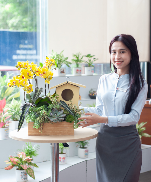 Chậu gồm 3 gốc lan mini vàng (2 vòi) và các loại sen đá mix. Sản phẩm hiện cung cấp tại Tp.HCM