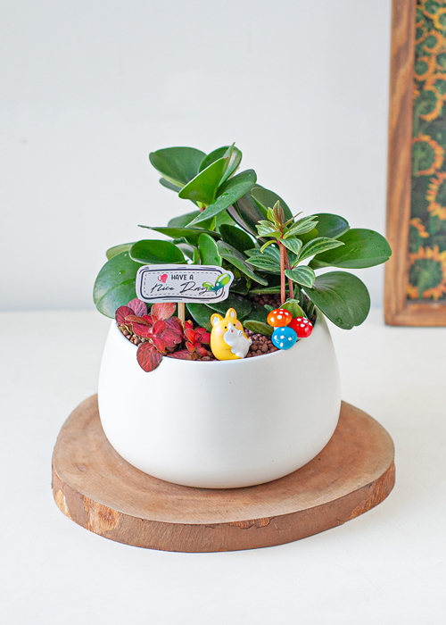 Tiểu cảnh mini như một khu vườn thu nhỏ bao gồm sự kết hợp của nhiều loại cây với phụ kiện trang trí đa dạng, nổi bật dưới bàn tay của những người trồng đầy sức sáng tạo.