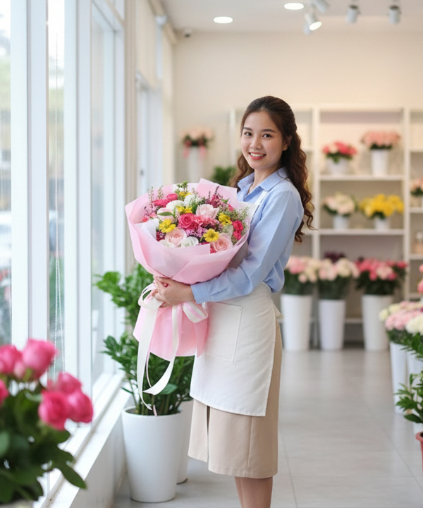 "Full Of Sunshine" is a cheerful combination of many different flowers. Like the name, "Full Of Sunshine" gives the viewer the feeling of strong, full of energy and vitality. Give "Full Of Sunshine" to your friends, colleagues, people you love with the message: "Wishing you stay young, beautiful and full of joy"