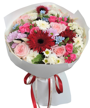 "Gift for you" bouquet is a sweet combination of pink candy, peach avalanche roses and some other flowers, this product will send good wishes to the recipients on their special occasions.