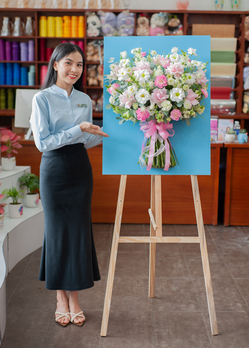 This is a specially designed flower arrangement and currently provided in Ho Chi Minh city and Ha Noi only.