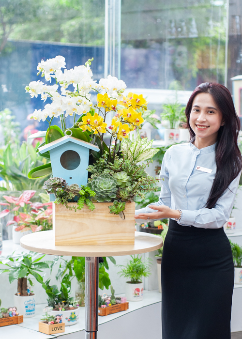 Chậu gồm 3 gốc lan mini trắng và 2 gốc lan mini vàng (2 vòi) và các loại sen đá mix. Sản phẩm hiện cung cấp tại Tp.HCM