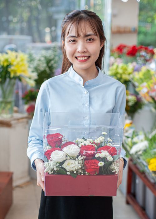 This is a specially designed flower arrangement and currently provided in Ho Chi Minh city and Ha Noi only.
