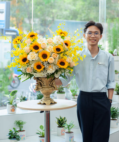 This is a specially designed flower arrangement and currently provided in Ho Chi Minh city and Ha Noi only.
