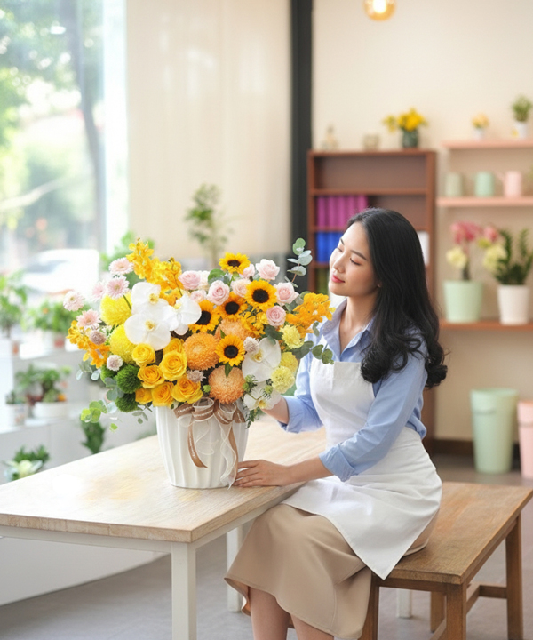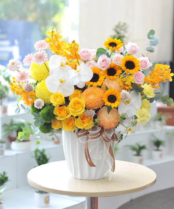 This is a specially designed flower arrangement and currently provided in Ho Chi Minh city and Ha Noi only.