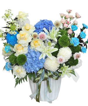 Hộp hoa Ocean Hearts nổi bật với tú cầu xanh nhập khẩu đầy đặn, kết hợp cúc mẫu đơn, cẩm chướng, hoa lily kép trắng, hoa hồng Victo và green wicky xanh tạo nên vẻ đẹp thanh lịch, bình yên như sắc biển. Tông màu xanh – trắng – kem mang lại cảm giác an nhiên, dịu mát, thay cho lời chúc trái tim người nhận luôn vững vàng và tràn đầy yêu thương. Ocean Hearts không chỉ là hộp hoa chúc mừng mà còn là lời nhắn nhủ lạc quan: giữa mọi sóng gió, chỉ cần giữ niềm tin và sự bao dung, bạn sẽ luôn tìm thấy bến bờ bình yên và cơ hội mới để bắt đầu.