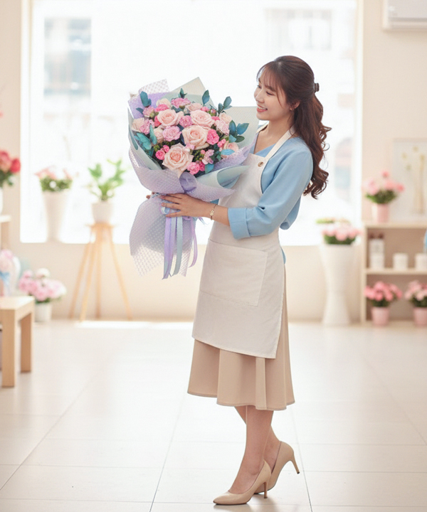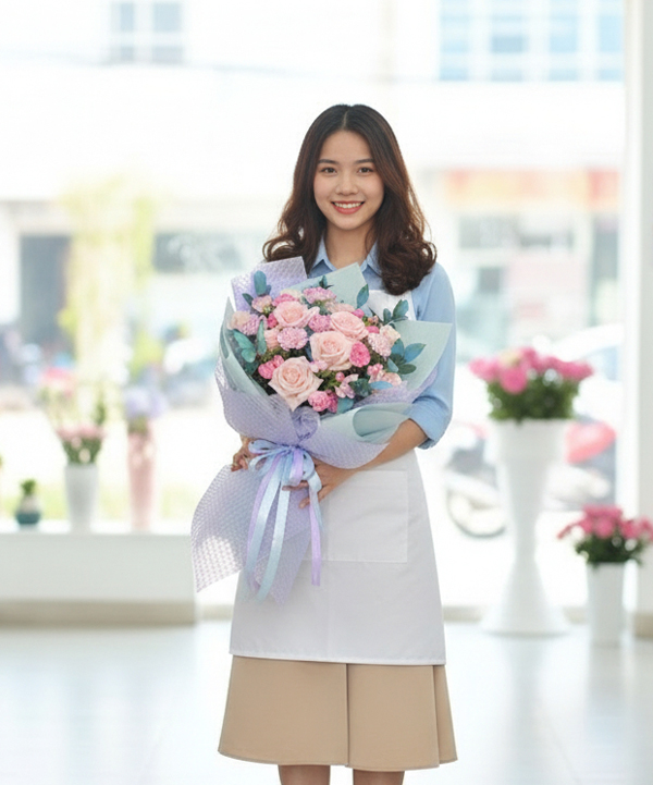 Với tone màu hồng pastel nhẹ nhàng và tràn đầy nữ tính như sự dịu dàng, đằm thắm của những cô thiếu nữ xinh xắn tuổi trăng tròn. Hoa hồng da kết hợp cùng cát tường hồng và baby trắng chắc chắn sẽ là điều bất ngờ và sang trọng dành tặng cho những cô gái đáng yêu