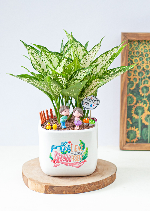 *Chậu cây bao gồm: Cây Ngọc Ngân, Phụ kiện trang trí, Chậu men sứ vuông 12cm