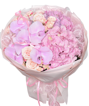 Bó hoa là sự hòa quyện thanh thoát giữa cẩm tú cầu hồng, lan hồ điệp và hồng pastel, mang vẻ đẹp mềm mại và sang trọng. Hoa cẩm tú cầu tượng trưng cho tình yêu thuần khiết, chân thành và sâu lắng. Bó hoa là lựa chọn lý tưởng cho những dịp kỷ niệm tình yêu, ngày Valentine, hoặc đơn giản là món quà “tặng không vì lý do gì” – chỉ để gửi chút ngọt ngào bất ngờ đến người bạn thương.