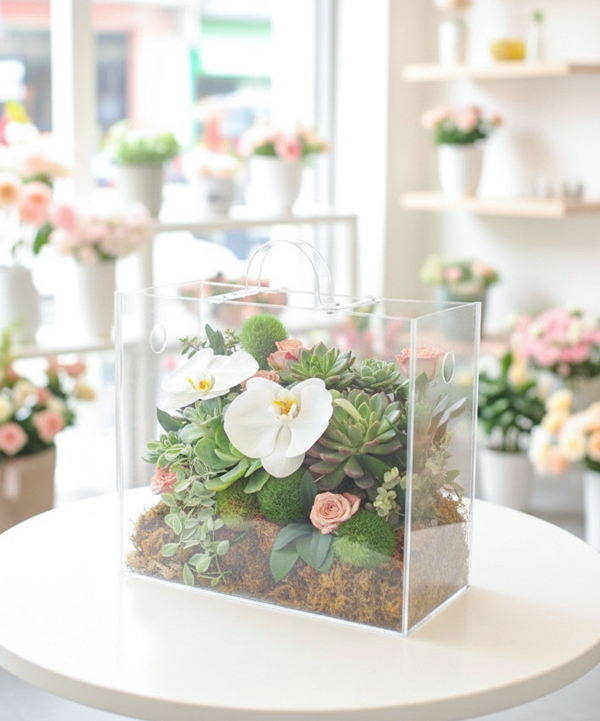 Dòng sản phẩm hoa tươi trong hộp mica là sự hòa quyện giữa vẻ đẹp tự nhiên và phong cách hiện đại, mang lại sự cuốn hút và thanh nhã. Lớp mica trong suốt giúp tôn lên vẻ đẹp từng bông hoa, tạo cảm giác nhẹ nhàng và sang trọng. Đây không chỉ là món quà, mà còn là lời nhắn gửi yêu thương, thể hiện sự chăm chút tỉ mỉ trong từng chi tiết. Sản phẩm là lựa chọn hoàn hảo cho những dịp đặc biệt, mang đến niềm vui và xúc cảm cho người nhận, thể hiện sự trân trọng và ý nghĩa sâu sắc từ người tặng.