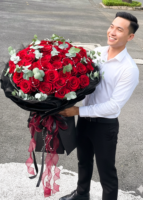 Bó hoa là sự kết hợp giữa hồng đỏ ecuador nhập khẩu sang trọng và lá bạc eucalyptus, mang vẻ đẹp hiện đại, tinh tế. Màu đỏ biểu trưng cho đam mê và năng lượng, trong khi sắc bạc đem lại cảm giác thanh lịch và cân bằng. Đây là lựa chọn lý tưởng để tặng trong các dịp chúc mừng, kỷ niệm hoặc thể hiện tình cảm chân thành.