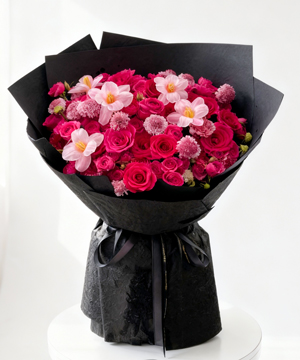Lunar Pearl là bó hoa hồng Pink Floyd rực rỡ trong nền giấy gói đen sang trọng, tạo hiệu ứng “glow” nổi bật như ánh sao giữa bầu trời đêm. Sắc hồng được cân bằng bởi những cành scabiosa mềm mại và điểm xuyết thêm những cành tulip hồng pastel nổi bật tạo cảm giác hiện đại, kiêu kỳ nhưng vẫn tinh tế—phù hợp mọi dịp chúc mừng, sinh nhật, kỷ niệm hay tỏ tình. Bó hoa có 2 phiên bản cho bạn lựa chọn: 1 là phiên bản dùng hồng Pink Floyd nhập khẩu (bông to), 2 là phiên bản dùng hồng Pink Floyd của Đà Lạt (bông nhỏ 1/2 so với hoa nhập). Để bảo đảm thành phẩm đúng ý, Quý khách vui lòng chọn đúng phiên bản.