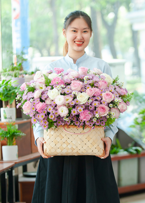 Giỏ hoa tươi - Giỏ cúc rossi hoa hồng - 14480