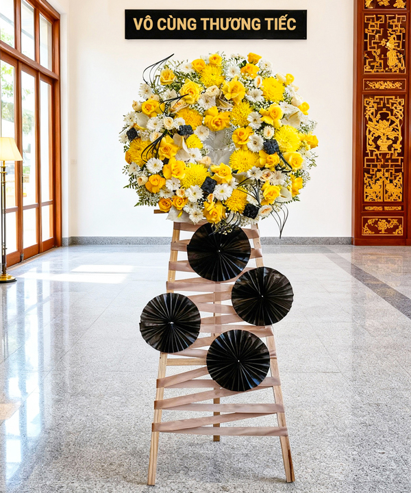 Trong tang lễ ở Việt Nam, hoa màu vàng thường mang ý nghĩa tôn nghiêm và sự kính trọng. Màu vàng, gắn liền với Phật giáo, biểu thị cho sự thanh thản và mong ước về sự giải thoát cho linh hồn người quá cố. Hoa màu vàng còn tượng trưng cho ánh sáng, hy vọng và lòng biết ơn, gửi gắm thông điệp về sức mạnh tinh thần, đồng thời thể hiện sự đồng cảm sâu sắc với gia đình người đã khuất.