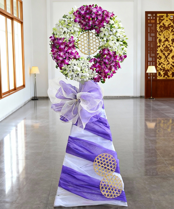 Với lòng kính trọng tột cùng, kệ hoa được chọn lựa để thể hiện lòng thành của chúng tôi trong giây phút chia ly này. Mỗi sắc màu và hương thơm nhẹ nhàng của hoa đều gửi gắm tình thương và sự ngưỡng mộ chúng tôi dành cho người đã ra đi. Xin nguyện cầu cho họ được yên nghỉ trong an bình.