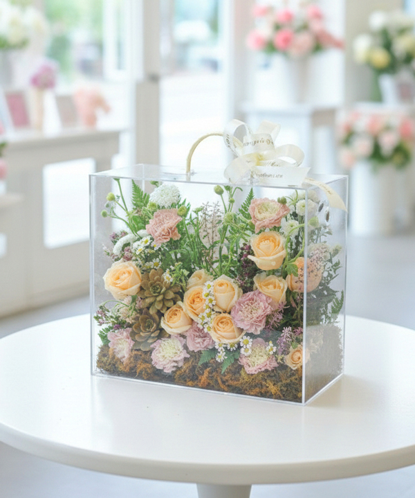 Dòng sản phẩm hoa tươi trong hộp mica là sự hòa quyện giữa vẻ đẹp tự nhiên và phong cách hiện đại, mang lại sự cuốn hút và thanh nhã. Lớp mica trong suốt giúp tôn lên vẻ đẹp từng bông hoa, tạo cảm giác nhẹ nhàng và sang trọng. Đây không chỉ là món quà, mà còn là lời nhắn gửi yêu thương, thể hiện sự chăm chút tỉ mỉ trong từng chi tiết. Sản phẩm là lựa chọn hoàn hảo cho những dịp đặc biệt, mang đến niềm vui và xúc cảm cho người nhận, thể hiện sự trân trọng và ý nghĩa sâu sắc từ người tặng.